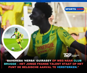 Brugge / Nantes – De transfermarkt staat op het punt van een mogelijke schokgolf. Volgens meerdere betrouwbare bronnen heeft Bahereba “Herba” Guirassy, het 19-jarige offensieve talent van , een persoonlijke overeenkomst bereikt met . Dit betekent dat een van de meest veelbelovende jonge aanvallers van Frankrijk op het punt staat om de Belgische topclub te vervoegen, in een deal die zowel strategisch als emotioneel van groot belang kan zijn voor Brugge en de Belgische competitie.
